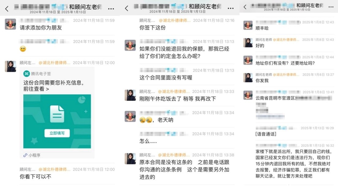 2024年12月,江西客戶S女士在網上看到一則“代理退保”的廣告,聲稱“全額退保,不成功不收費”。因當時經濟壓力較大,并且缺乏對黑產中介的了解,S女士接觸了該所謂的“專業(yè)代理機構”。在對方的誘導下,客戶以“銷售誤導”等虛假理由投訴保險公司,要求全額退保,同時還向對方支付了4800元作為“定金”。然而后續(xù)幾天,S女士始終沒有等到對方的消息。