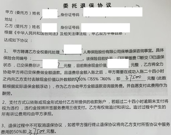起初,李先生與所謂的“某律師”簽訂了一份委托退保協(xié)議,并聽從對方的要求編造虛假理由多方投訴保司。太平人壽工作人員多次邀約客戶面談但均被回絕,為取得客戶的信任,公司申請當?shù)氐娜嗣裾{解委員會出面調解。在調解過程中,公司工作人員指出了該委托退保協(xié)議中存在的明顯漏洞——無論退保成功與否客戶都需向對方繳納一筆近4萬元的手續(xù)費。隨后當客戶撥通電話質問這位“律師”時,對方果然原形畢露,并威脅將依據(jù)該協(xié)議內容上門追討。最終,客戶選擇報警處理,同時感謝太平人壽和調解員的耐心勸導,并辦理了保單復效手續(xù)。