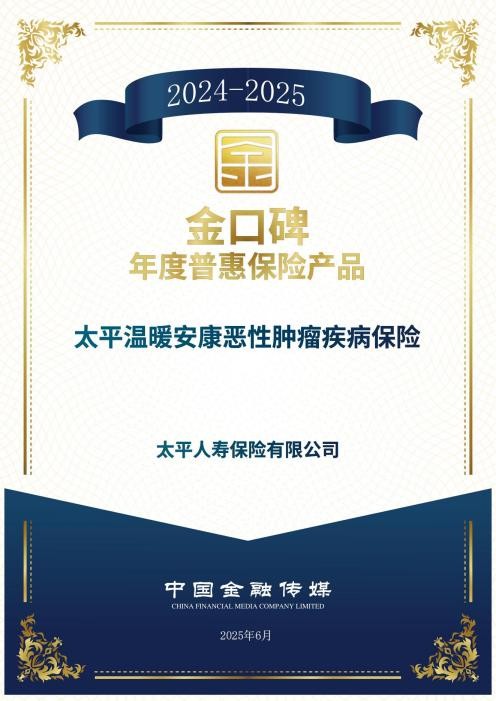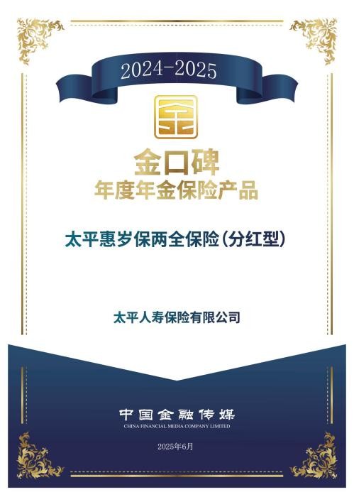 近日,《中國銀行保險報》公布了2024-2025“金口碑”年度保險產(chǎn)品名單,太平人壽兩款產(chǎn)品榜上有名,其中“太平溫暖安康惡性腫瘤疾病保險”入選年度普惠保險產(chǎn)品,“太平惠歲保兩全保險(分紅型)”入選年度年金保險產(chǎn)品。