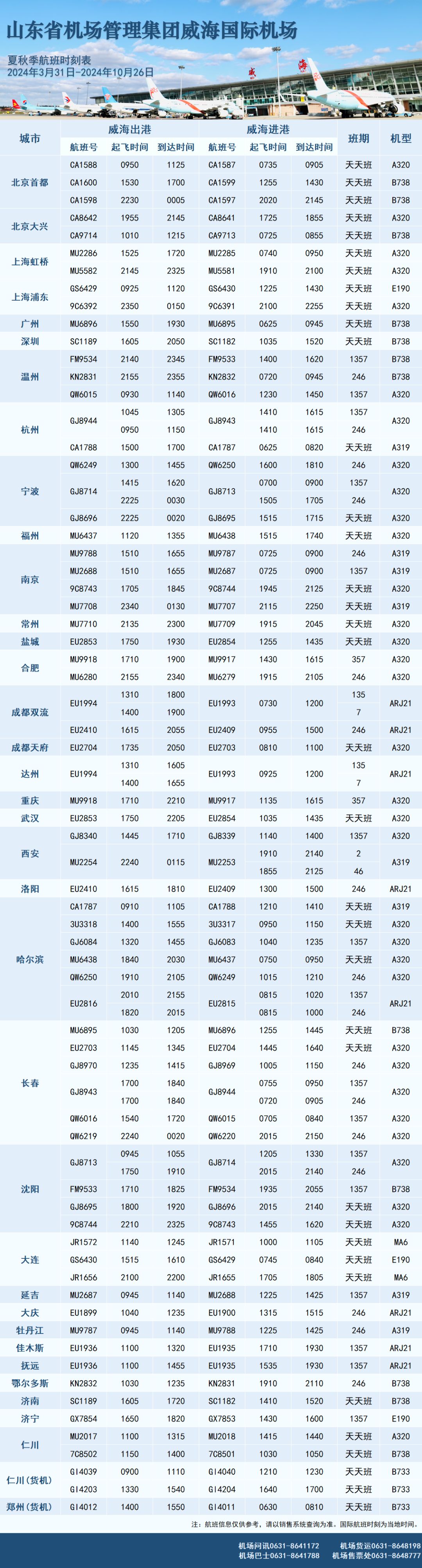 為迎接暑運(yùn)旺季的到來,威海機(jī)場加密國內(nèi)熱門旅游城市航線航班,完善航線網(wǎng)絡(luò)布局,暑期開通常州航班,加密北京、溫州、西安、哈爾濱、長春等熱點(diǎn)城市航班,至北京、上海、哈爾濱、沈陽和長春的航班分別達(dá)到每周35班、21班、35班、25班和31班,韓國首爾每周14班,運(yùn)營航線達(dá)到36條,更好地滿足旅客暑期航空出行需求。