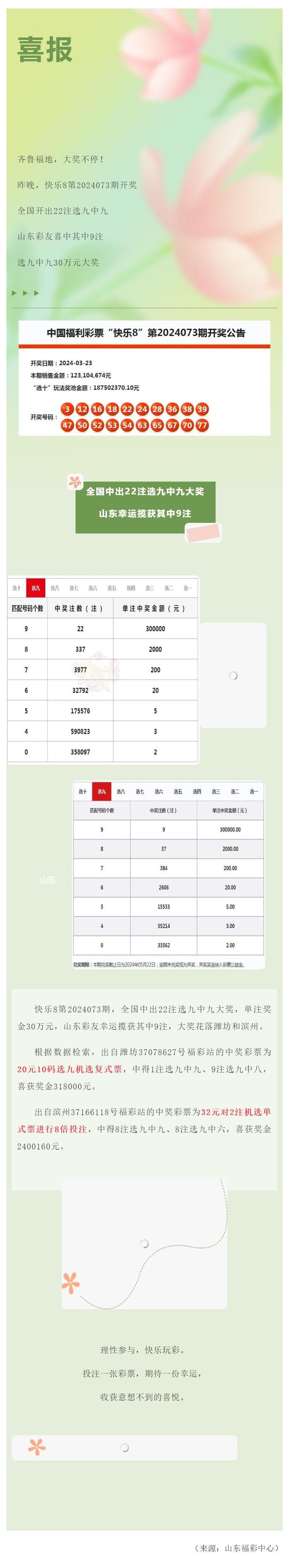 山東攬獲9注快樂8選九中九30萬元大獎(jiǎng)!