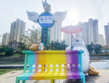 泉樂坊公園坐落于五渚河溫泉段,泉樂坊商業(yè)街南側,面積約2.7萬平方米。公園的設計上,巧妙采用“一帶、九景、多節(jié)點”的功能結構布局。其中,“一帶”指五渚河濱水岸帶,它宛如一條靈動的絲帶,將公園的精華景觀串聯(lián)成珠;“九景”則涵蓋龍貓車站、天空之境、開往春天的列車等諸多景觀,這些景觀造型復古且充滿文藝氣息,極為適合游客拍照打卡。