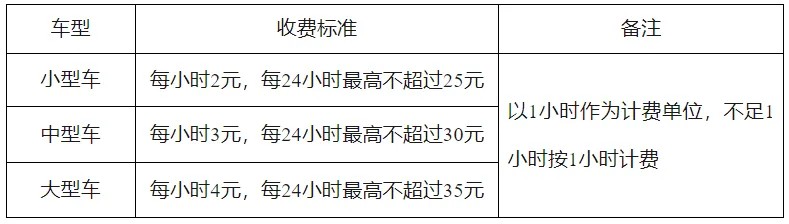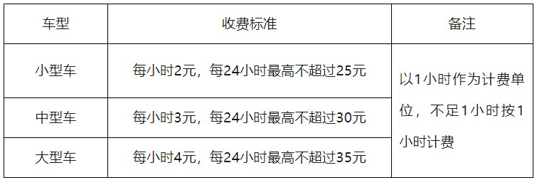 停車時(shí)間不超過1小時(shí)(含)不收費(fèi),新能源汽車不超過2小時(shí)(含)不收費(fèi),超過免費(fèi)時(shí)長后:
