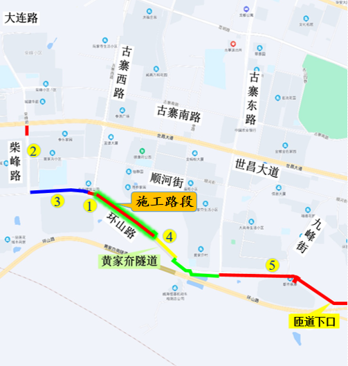 根據(jù)工程總體建設(shè)需要以及總體進度計劃安排,經(jīng)上級部門批準(zhǔn),計劃近期在環(huán)山路(古寨西路至黃家夼隧道西)進行施工,為確保施工期間的交通安全,現(xiàn)公告如下: