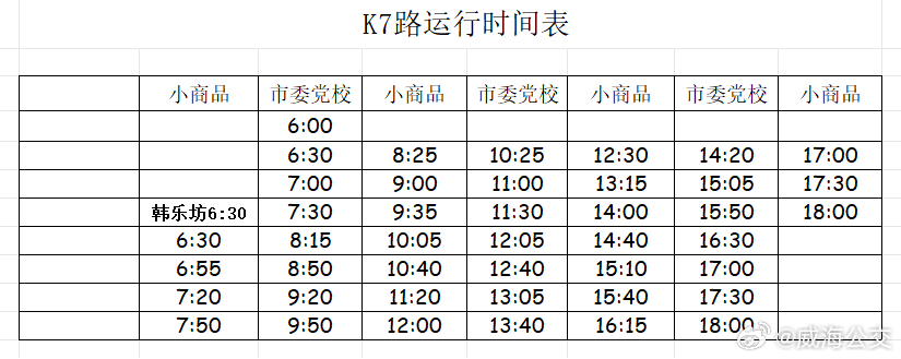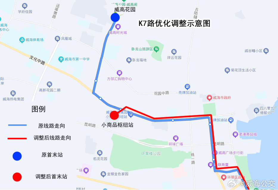 調(diào)整后,K7路由市委黨校發(fā)車,按原線路運(yùn)行至小商品樞紐站,取消威高花園、神道口、市民卡環(huán)翠服務(wù)中心、小商品市場4個站點(diǎn)。