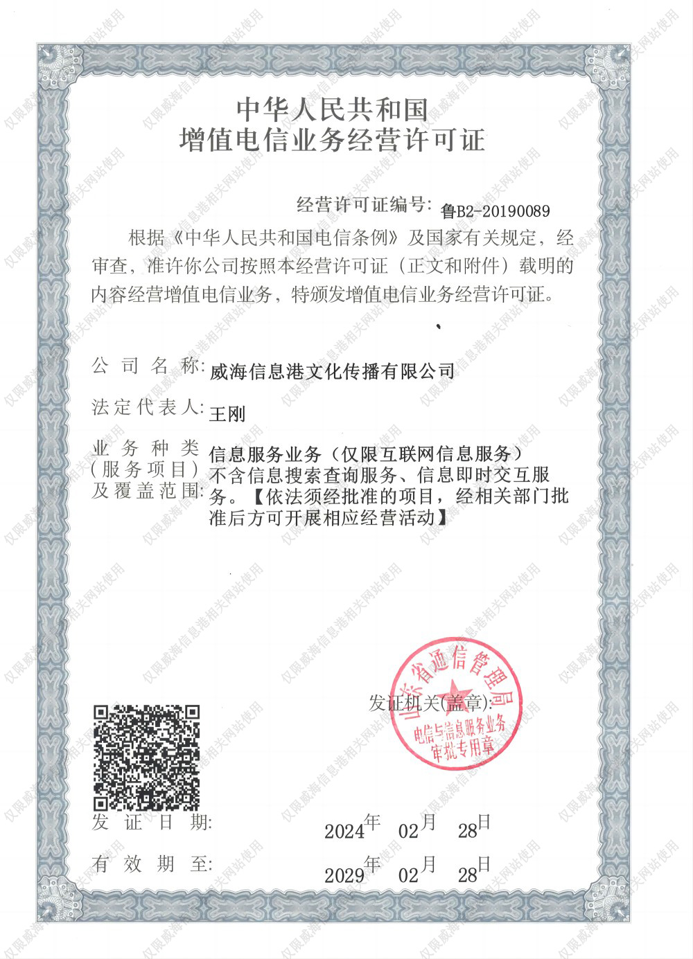 增值電信業(yè)務經(jīng)營許可證