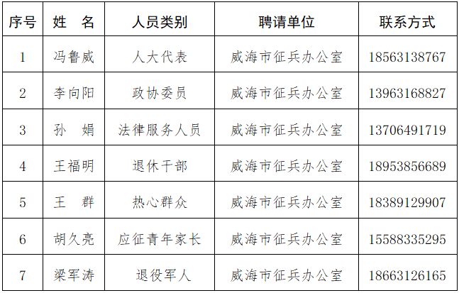 威海市征兵業(yè)務(wù)咨詢、監(jiān)督舉報電話