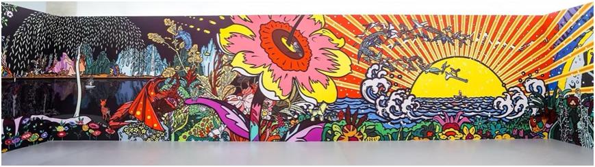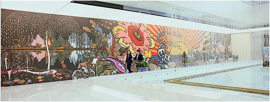 作為一次金融與藝術(shù)深度融合的跨界合作,該展覽展出了卜樺兩部四十多米長(zhǎng)的巨幕數(shù)字藝術(shù)作品《重逢2025》、《宇宙花園二》以及26米美術(shù)館級(jí)數(shù)字藝術(shù)壁畫《奇跡般》等作品,并以其作品中明艷絢麗的色彩和豐富繁茂的自然意象為靈感來(lái)源,設(shè)計(jì)制作了多個(gè)立體造型裝置,在視覺(jué)上為觀眾構(gòu)建一個(gè)美好奇妙的數(shù)字花海,觀眾可沉浸式置身其中打卡拍照,體驗(yàn)世博會(huì)未來(lái)館導(dǎo)演、國(guó)際知名藝術(shù)家卜樺創(chuàng)造的精神花園。